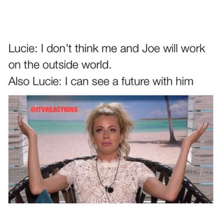 Lucie’s playing the typical princess in distress game. She picked Joe, (for whatever reason) after saying she “doesn’t see a future with him”, and even AFTER saying she’s jealous Tommy had a date with Molly Mae.